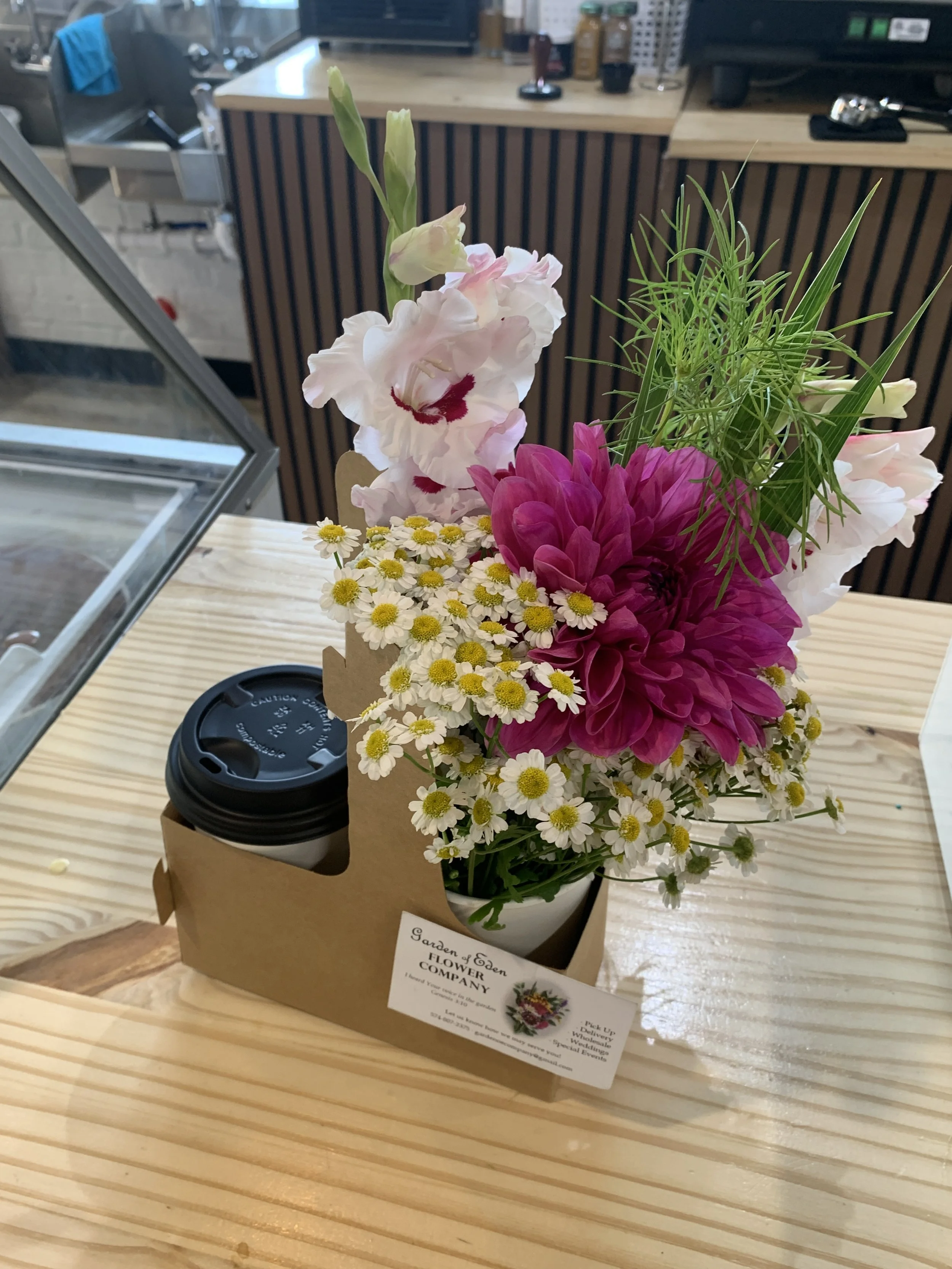 Categories: All Vase Arrangements Shop All Vase Arrangements Custom Vase Arrangements from $40.00 Select Size Small Medium Large Premium Add To Cart Added! Wrapped Bouquet - Farmer's Choice $20.00 Add To Cart Added! Bouquet Bar from $150.00 View Options Sip & Sprig $15.00 Add To Cart Added! Honey Sticks $19.99 Add To Cart Added!